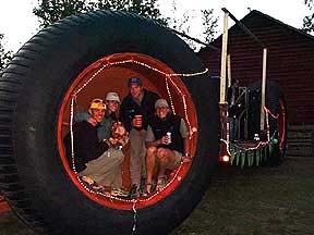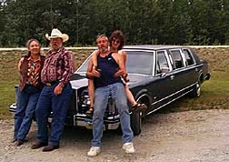 Parties are also great for combining celebrations. Gil and Slick, (the couple on the left) decided to celebrate their 10th anniversary in style and arrived at the festivities in a limousine accompanied by their “honorary” best-man and maid-of-honor for the day, Bob and Terry. Can you believe that??? Out in the middle of no-where, and we have a limousine service!! WOW! Maybe we do live in Alice’s looking glass after all :0)......