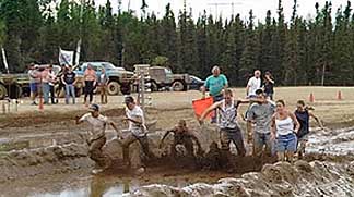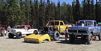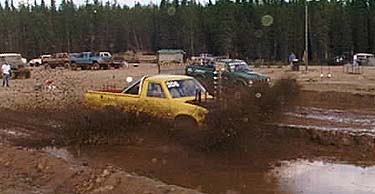 Hi! One of the great ways to know that summer has officially arrived in Delta is with the onset of the Interior Racing Association's "Mud Drag Racing" season. It's a great way to catch some rays, visit with friends and play in the mud instead of the snow! It was started by a few people here in Delta, but has grown quite a bit and people from all over the state come to show off their rigs and try their skills in the pits (of course, swapping lies is mandatory and mascots range from antlers, to trolls, to "mudzilla"!